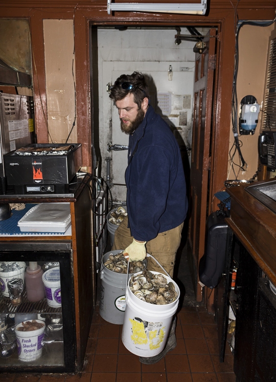 After loading the shell from the Irish pub onto his dolly, Witzke wheeled the oysters back to the truck.